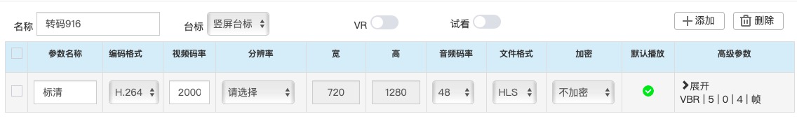2.云点播-->创建视频编码库:9:16分辨率.(720:1280),编码模版关联上竖屏台标。