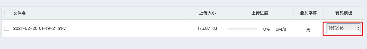 3.上传视频文件,选择竖屏转码模版(可把竖屏编码模版设为默认)。