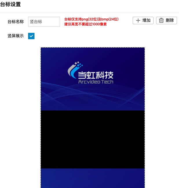 1.台标管理-->创建竖屏台标,选择“上竖屏展示”复选框。