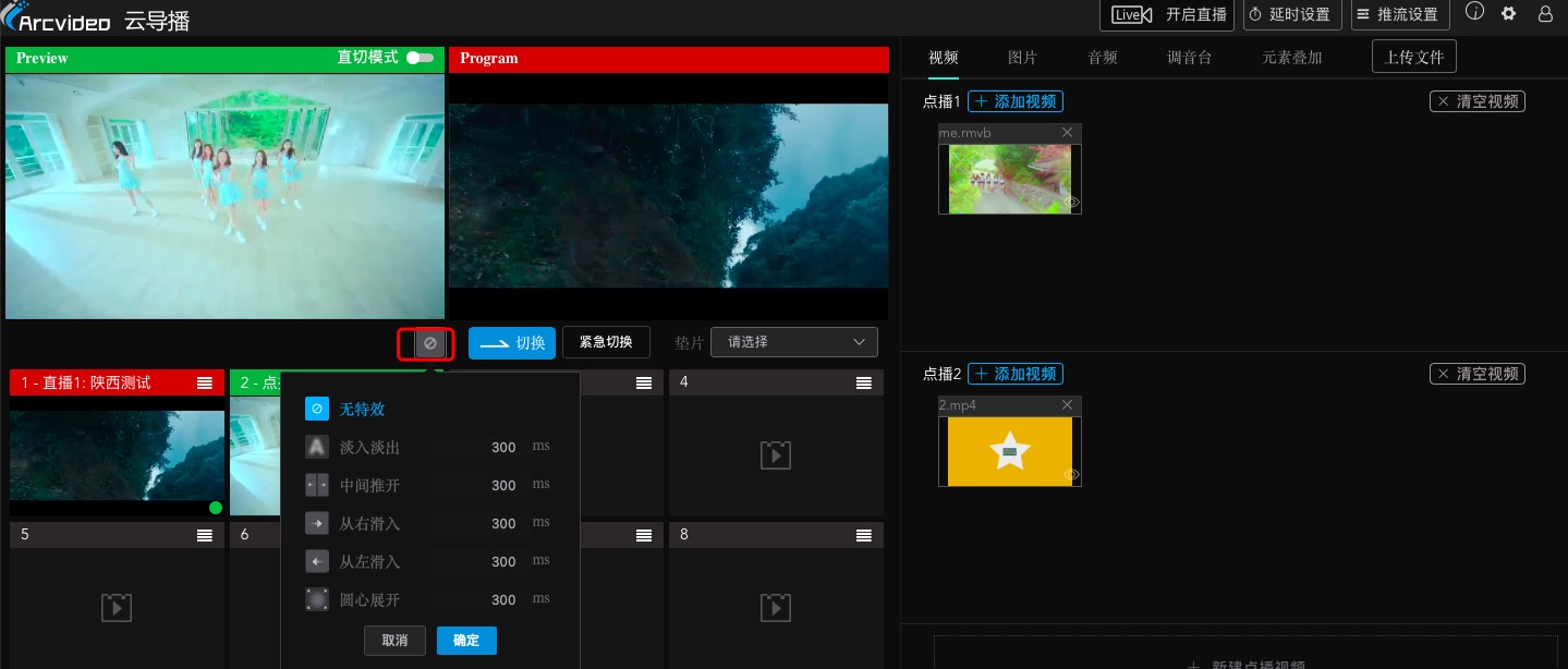 如何使用云导播切换转场特效?