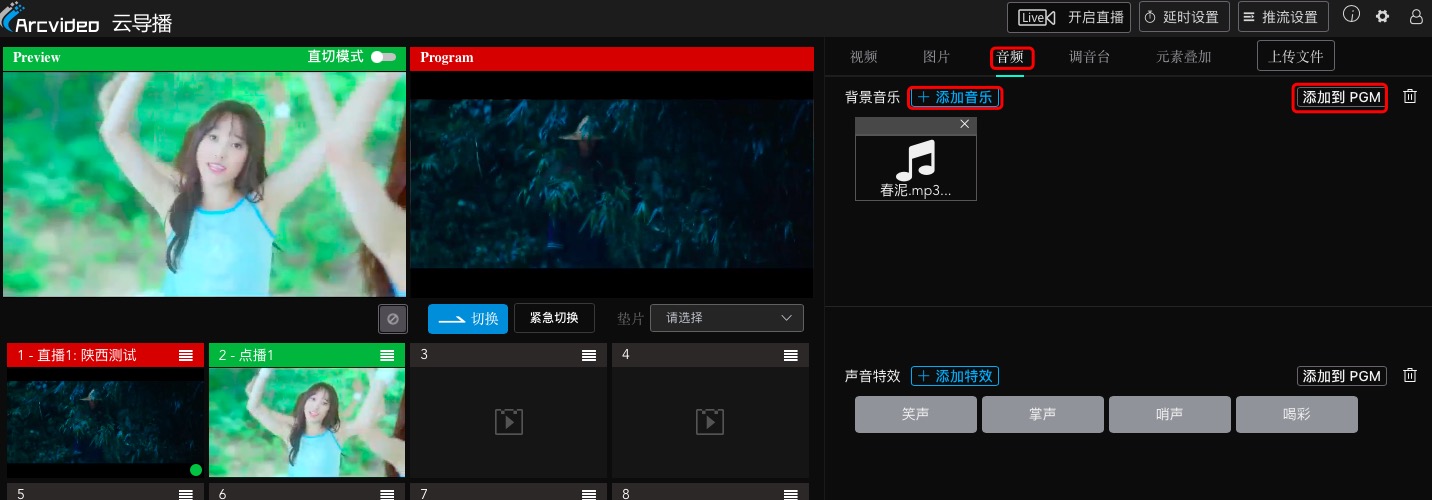 2.增加背景音乐,丰富直播音效,声音特效。