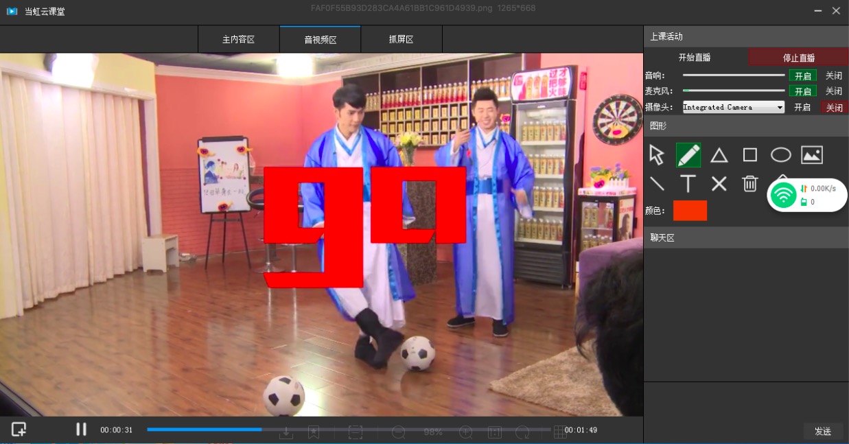 操作步骤八:支持视频播放课件区域,区域数据进行平滑输出。