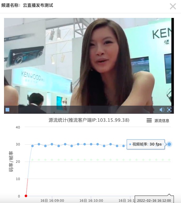 3.云直播对直播流视频码率,帧率,音频码率和帧率实时进行监控,点击源流信息,查看直播流相关的信息。